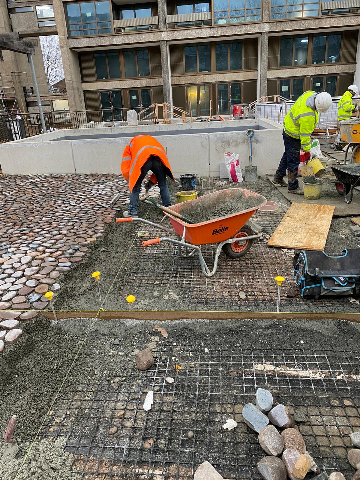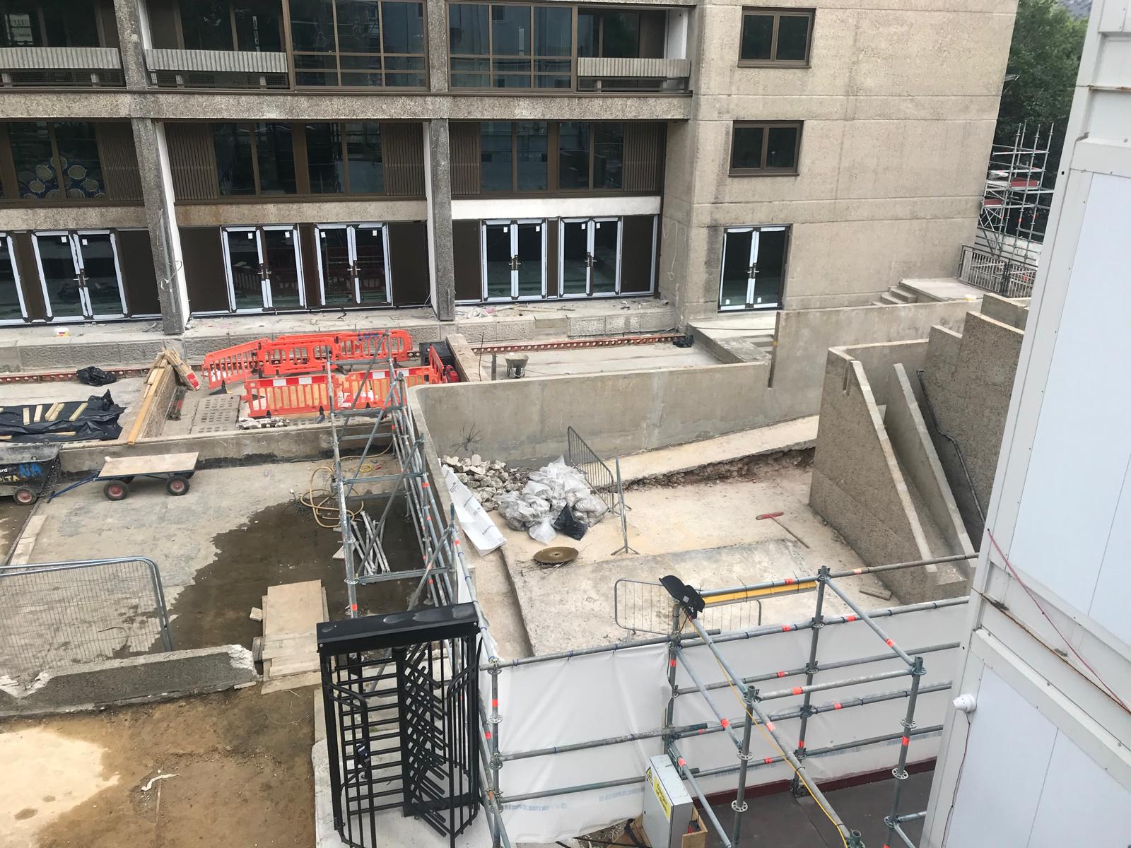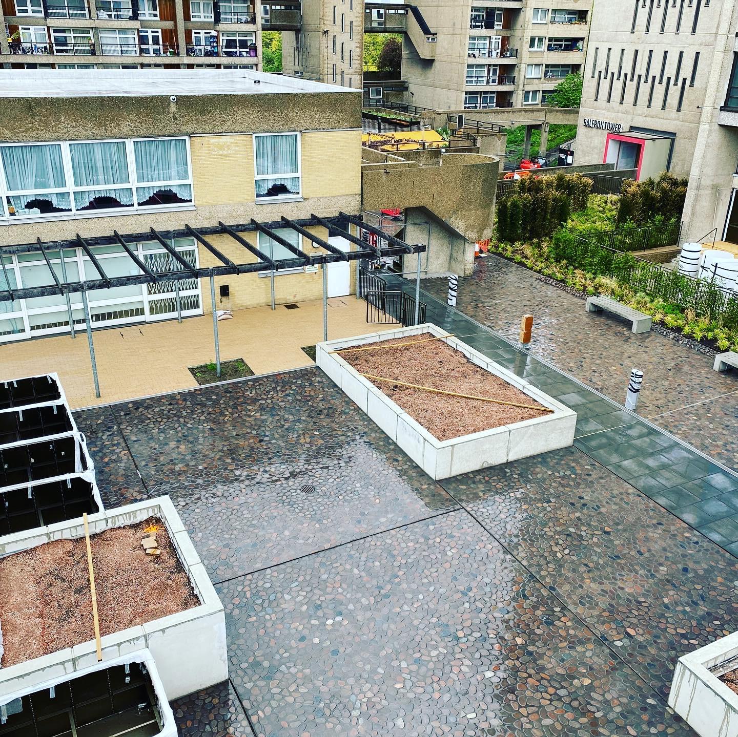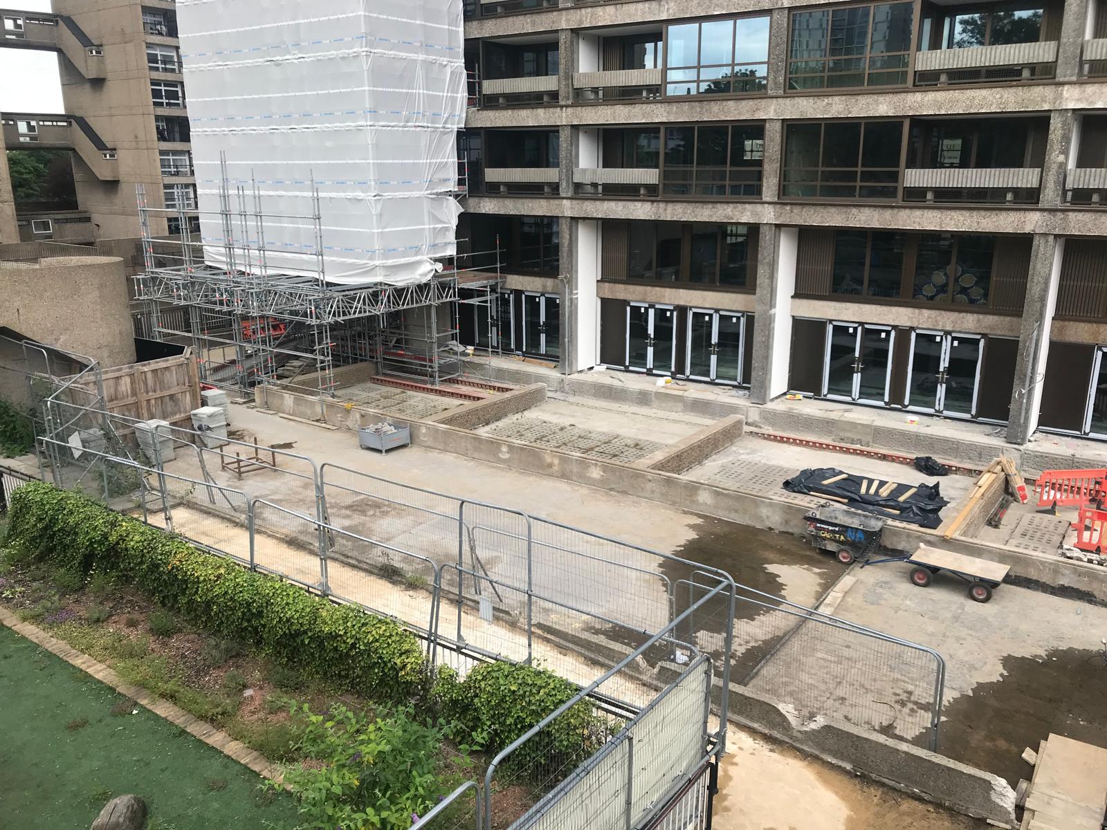 Extensive hard and soft landscaping including various materials and finishes at the iconic grade 2 listed building designed by Erno Goldfinger