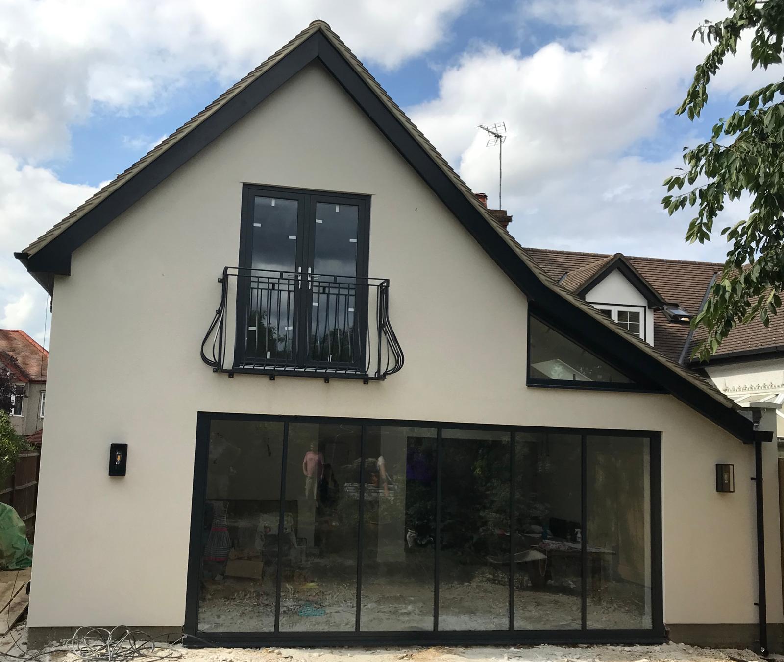 Two storey extension with extensive layout changes to both ground and 1st floor and external works bespoke kitchen and bathrooms modern open plan living space